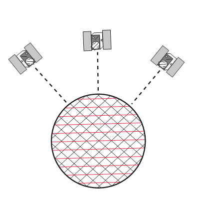 Die Beobachtung eines dritten Satelliten grenzt die Zahl der möglichen Positionen weiter ein,