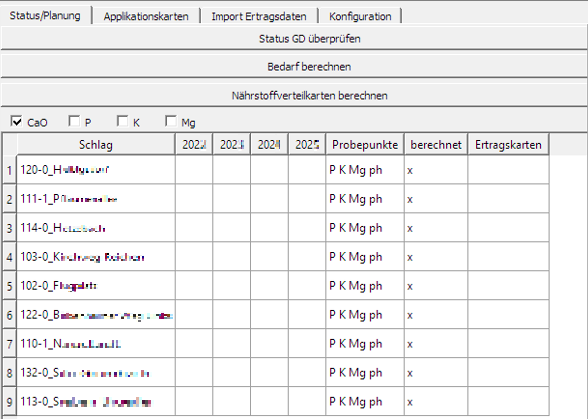 - Import von bereits erstellten teilflächenspezifischen Nährstoffkarten z.B im Shapeformat und Export im ISOBUS und John Deere Terminalformat.