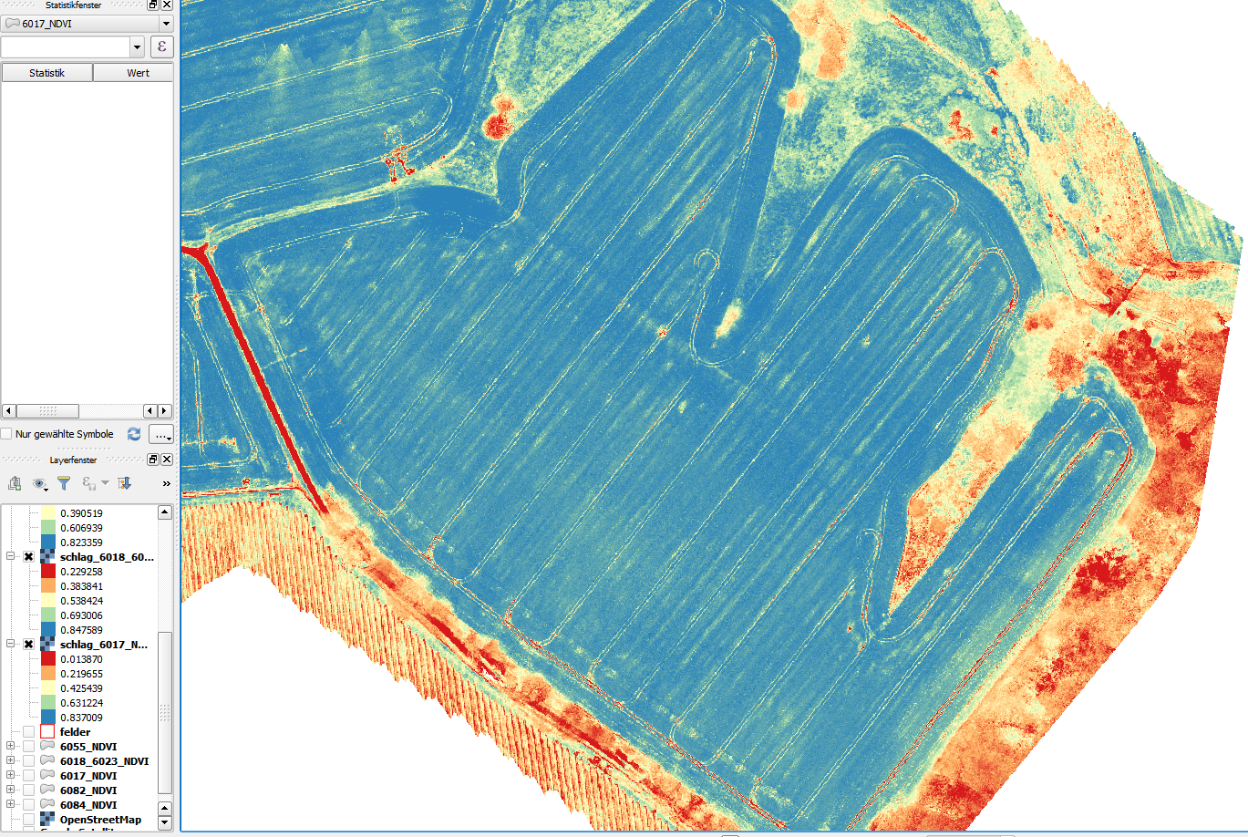 Im Oktober/November 2017 haben wir für 8 Betriebe und ca. 1500 ha die N-Düngung von Winterraps nach N-Aufnahme Herbst realisiert. Auf der einen Hälfte der Flächen wurden Drohnen-, auf der anderen Sentineldaten zur Erstellung der N-Aufnahmekarten genutzt.