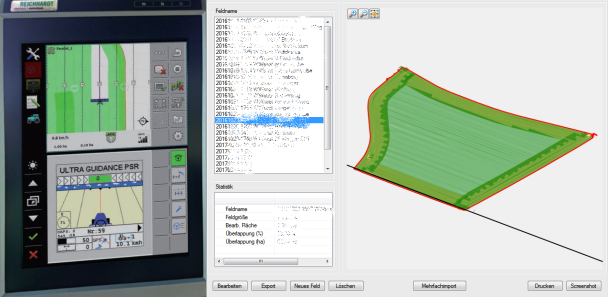Bis jetzt haben wir mit Landwirten zusammengearbeitet die entweder John Deere, Trimble und andere CNH Autopiloten plus Terminals im Einsatz hatten. Jetzt ist ein erster Betrieb mit mehreren Reichhardt RTK System dazugekommen. Als Terminal kommen sowohl ein Touch- als auch ein Tastenterminal zum Einsatz. Das RTK Signal bezieht er über RTK CLUE. Mit der Technik ist er voll zufrieden und möchte den nächsten Schritt beim Einsatz seiner RTK Systeme gehen. Wichtig sind ihm dabei das Anlegen und die langfristige Sicherung von festen Feldgrenzen sowie AB-Spuren. Die Planung läuft ab wie bei anderen SLS Projekten, als Datendrehscheibe allerdings kommt hier der TRACK-Guide Desktop zum Einsatz.