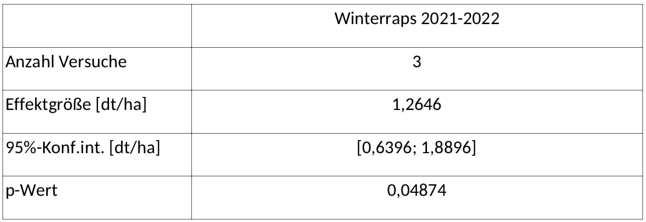 Um die Wirksamkeit des Verfahrens zu überprüfen führen wir begleitend PiG/OFR Versuche unseres Verfahrens durch. Die Metaanalyse von Versuchen 2021/2022 zeigt die Effekte des Verfahrens (1).