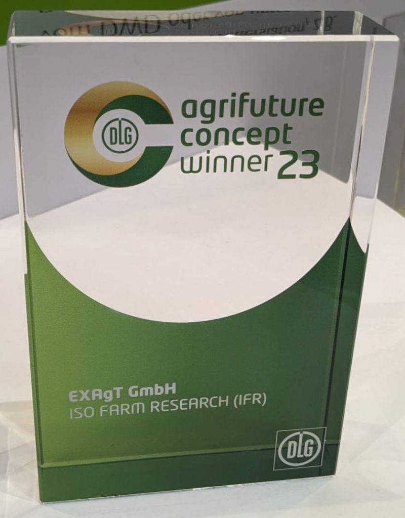 Die Partner AMAZONE, EXAgT, EXA Computing, geo-konzept, Hanse-Agro, die Fachhochschule Kiel und das Startup AgDoIT haben heute den Preis DLG-Agrifuture Concept Winner 2023 vom DLG-Präsident Hubertus Paetow überreicht bekommen.