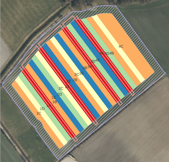 Unter anderem betreuen wir bei einem Projektpartner einen Versuch zur Unterfußdüngung im Mais. In diesem Fall kann dieser aus technischen Gründen nicht mithilfe einer Applikationskarte angelegt werden, außerdem macht die notwendige Randomisierung der Prüfglieder jeweils im Block eine sichere Versuchsanlage schwierig. Hier ist eine Spurplanung nötig, dabei wird jedes einzelne Prüfglied in allen Wiederholungen mittels jeweils einer Vollspur geplant und im Schlepperterminal via RTK-Autopilot nacheinander umgesetzt.