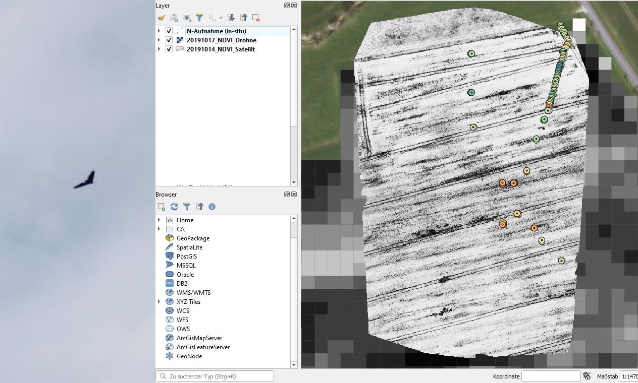 Unser Kredo in der Agronomie ist immer: vor Ort anschauen/messen, Maßnahmen anpassen, dann differenzieren und mit Versuchen Erfolg oder Misserfolg erkunden. Zum Beispiel hat die Nutzung von Satelliten- und Sensordaten viel Potential, aber nur mit Kontrollen/Vergleichsmessungen im aktuellen Bestand und agronomisch kompetenter Bewertung sind sie wirklich nützlich.