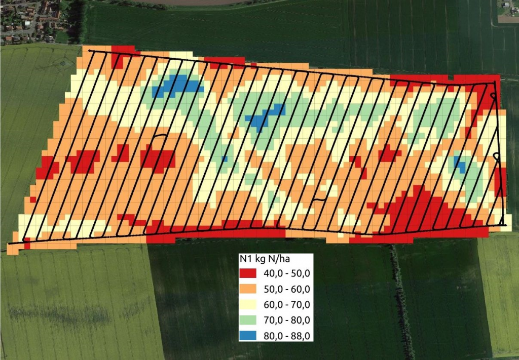 In der letzten Woche wurden die ersten Streukarten für die Andüngung im Winterraps auf der Grundlage von N-Aufnahmekarten aus dem Spätherbst erfolgreich abgearbeitet. Ziel ist für uns immer, das die Karten wirklich abgestreut werden, auch bei praktischen Problemen!