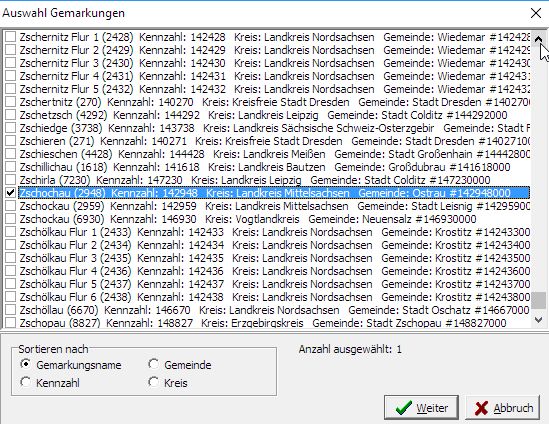 Abbildung 1: Gemarkungsauswahl Sachsen